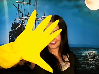 "Yellow rubber gloves for fisting. Do you want to feel them in yourself? Dominatrix Nika and glove fetish."