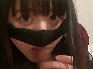 "POV Japanese goth girl, She shoots in her mouth with a thick, moist Blowjob"