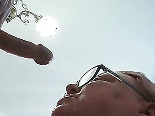 "mother-in-law gets a portion of cum on her face after a deep blowjob and penis masturbation"
