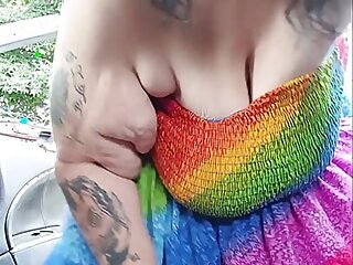 "Big natural saggy tits flopping ovals of nipples can't stay in a bathrobe"
