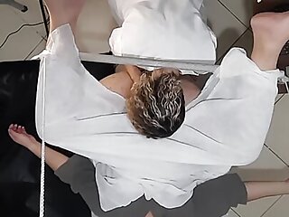"Urologist doctor gets horny during a prostate exam and ends up fucking the patient with her strapon"