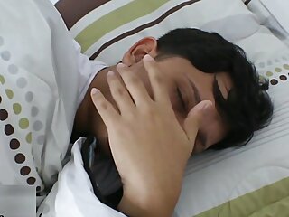 "Stepbrother gets into his stepsister's bed and fucks her pussy until she fills her with cum"