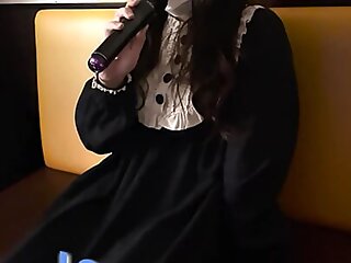 "POV Japanese goth girl with remote sex toy in public downtown"
