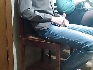 "Slim latin babe small dick blowjob on the chair"