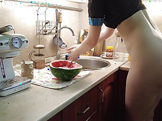 "Stepmom catches me jerking off and walks into the room with tight lycra I end up pouring the milk into her pussy"