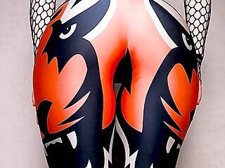 "Spandex leggings on my ass, in leggings I ride a big dildo"