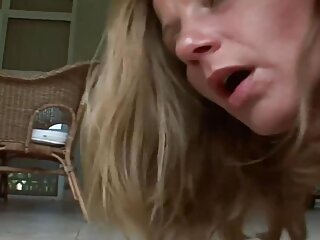 "Blonde mature with small tits sucking and riding dick outdoors"