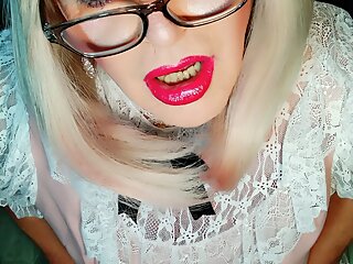 "Mrs Samantha fucks blonde Tgirl Daphne with her legs and heels high up in the air"